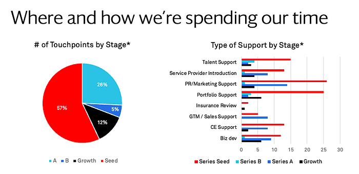 Today, after building the platform from the ground up, we can do more for our portfolio than we ever could before. For instance, we can assist portfolio companies with introductions to support providers and advisors, funding announcements, hiring, community building, and negotiating discounts, just to name a few.