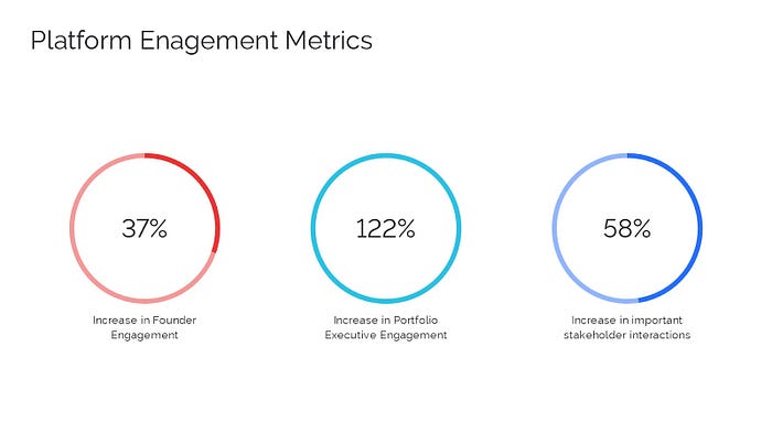 In terms of results, we saw a 45% increase in engagement with portfolio founders, a 122% increase in engagement with portfolio executives, and a 71% increase in engagement with essential people in Uncork’s network, such as LPs, co-investors, and sponsors.